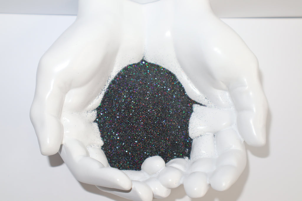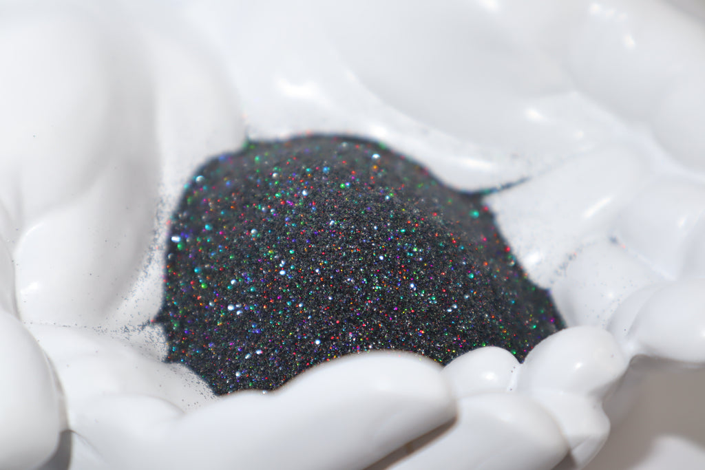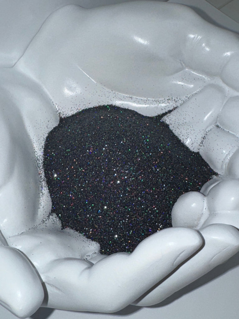 Add some sparkle to your life with Onyx -Ultra fine! This black glitter boasts a holographic color flip, perfect for adding a touch of magic to any project. With its ultra fine size of 1/128, you'll achieve a flawless and dazzling finish. Shine on, with Onyx!